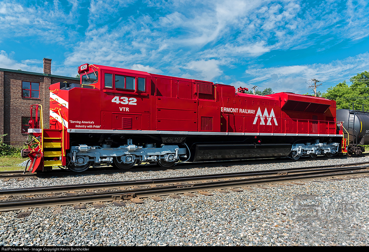 | The Southern Pride Mobile Painting contractors have released the Vermont Railway SD70M-2 432 in fresh red paint. The 432 will be on home rails by the weekend after having been painted in St. Albans, Vermont. This is the former FURX 103, nee Florida East Coast 103. |