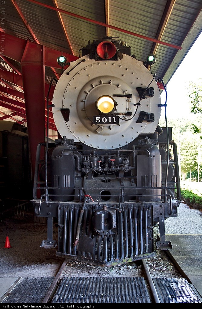The Santa Fe's (AT&SF) 5011 sit quietly out of the elements at the Museum of Transportation of St. Louis. The 5011 was the last generation of new steam locomotives purchase by the Santa Fe introduction by Baldwin Locomotive Works in 1944 the late version of the Texas Locomotive fleet. A total of 25 of these large engines were built. Numbers 5011 to 5035, when built, it was the Largest and Most Powerful Class of 2-10-4 "Texas" Type Locomotives ever built, and was dub the name "War Babies" by the Santa Fe due to the being built during World War II. The 5011 Class 2-10-4 served on the Santa Fe until the mid to later 1950s where they we're replace by the diesel locomotives. In 1959 4 of these Texas type locomotives were picked out by the AT&SF to be preserve by certain museums, the other 21 were scrapped. 5011, 5017, 5021, and 5030 are the current soul survivors of the 5011 Class 2-10-4s series locomotives. Most of these 2-10-4 on the Santa Fe served on Passenger, and Freight Service between Belen to Carlbad, NM on the Santa Fe's Areaiold Pecos Div.