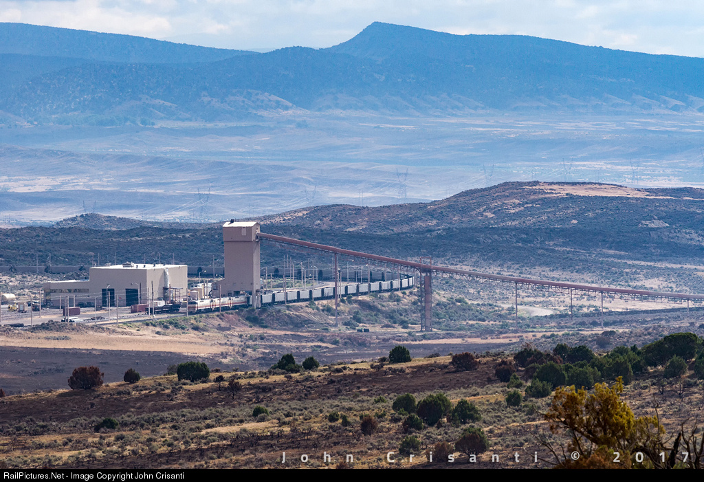 My one and only shot of the Deseret Power Railway near Dinosaur, Colorado. On July 26, 2017, the coal train for the Bonanza Power Plant was not loading at the loadout near Deserado Mine, which can be seen here off in the distance in the vast desolate landscape of Northwestern Colorado.