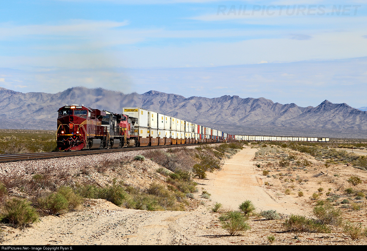 Nearing the summit of the continuous pull that has ailed them since departing Needles, BNSF's westbound Q NYCLAC is now only a few miles from the top at Goffs.