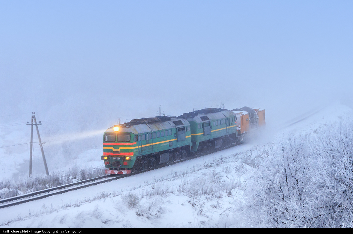 2M62U diesel locomotive with a snowplow near Zubtsov station