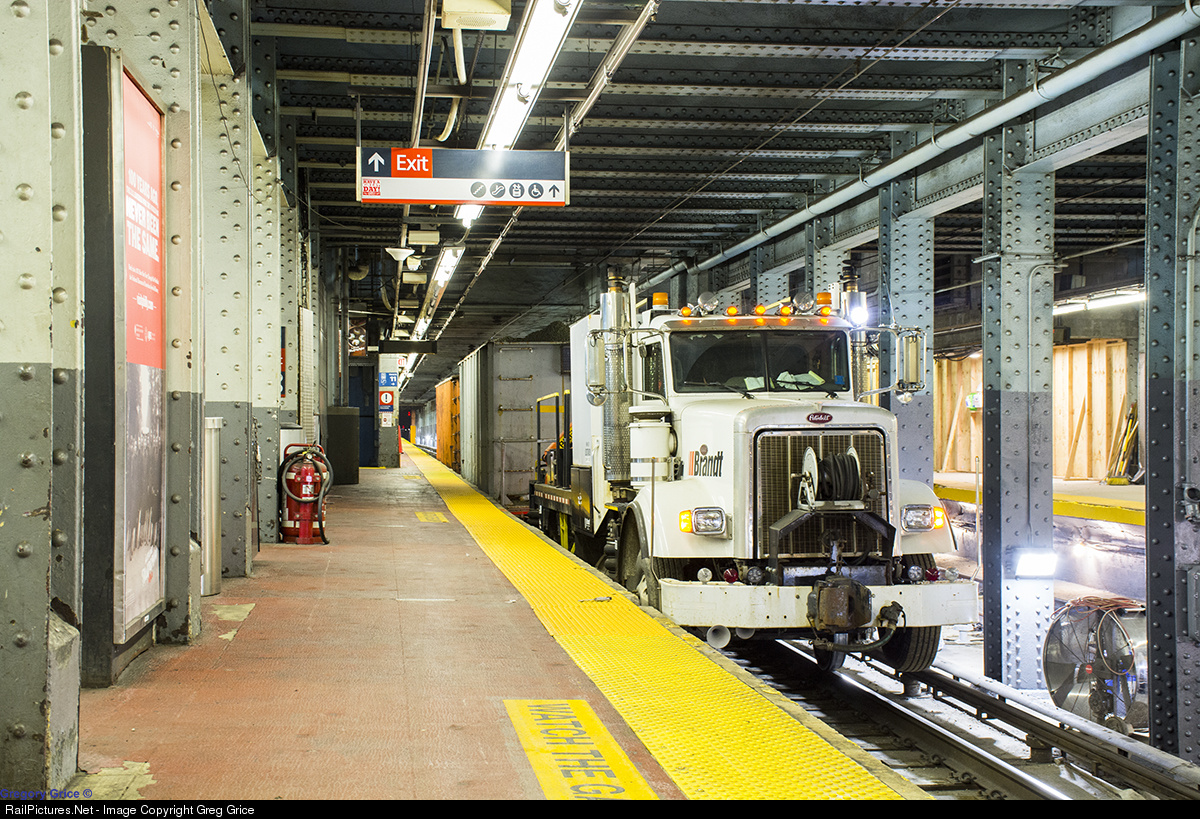 One of Amtak's Brandt Power Units sits on Track 11 at New York Pennsylvania Station with 2 loaded ballast hoppers in tow. Amtrak is in the process of replacing all of the aging track in Penn Station as part of their plan to improve operation.