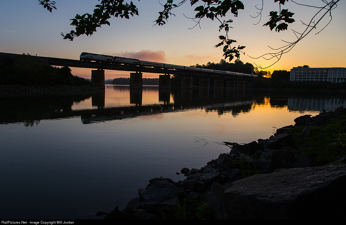 Two minutes after sunrise on a pleasant morning in the Carolinas, Amtrak train 19, the southbound Crescent for New Orleans, rolls over the Seneca River in Clemson running a couple minutes ahead of schedule.