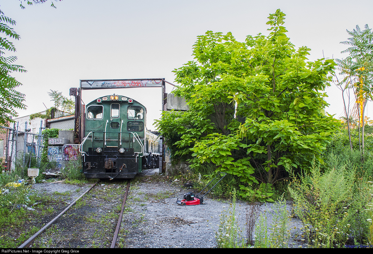 New York & Atlantic Railway's RS-20 spots a boxcar of bricks at Glenwood Mason Supply Company; a customer that has not received a car in about 2 years.