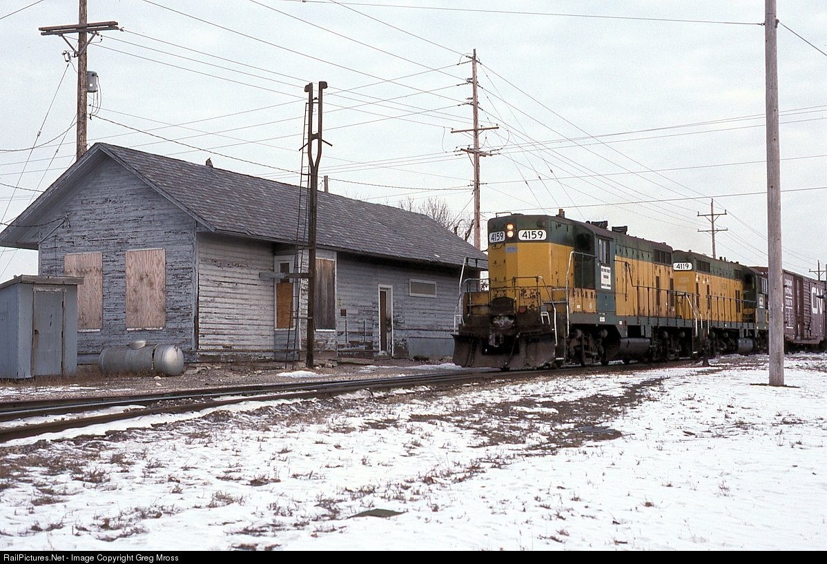 FRV 4159 brings a freight past the Kimberly, WI depot in December of 1992. This ex-CNW line provided a lot of paper traffic for the Fox River Valley RR. The depot did not last much longer though.
