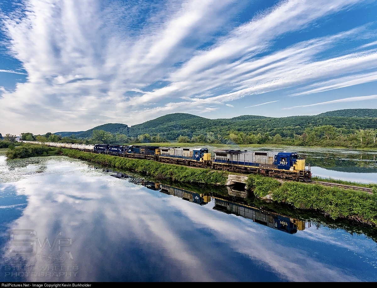 This week's installment of the VRS/PAR Saturday Slurry train may not be pretty, with MEC C40-8s 7627, 7585, 7635, 310 and 503, but for what the consist lacks, the sky more than makes up for! Seen departing Vermont Rail System's Riverside Yard on Saturday, August 19 at 1810 hrs.