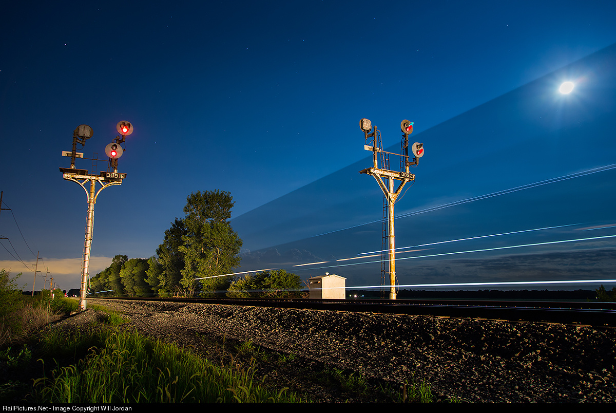 One of many eastbound freight trains on Norfolk Southern's busy Chicago line over the course of the night splits the now gone 309 intermediates from the days of the NYC.
