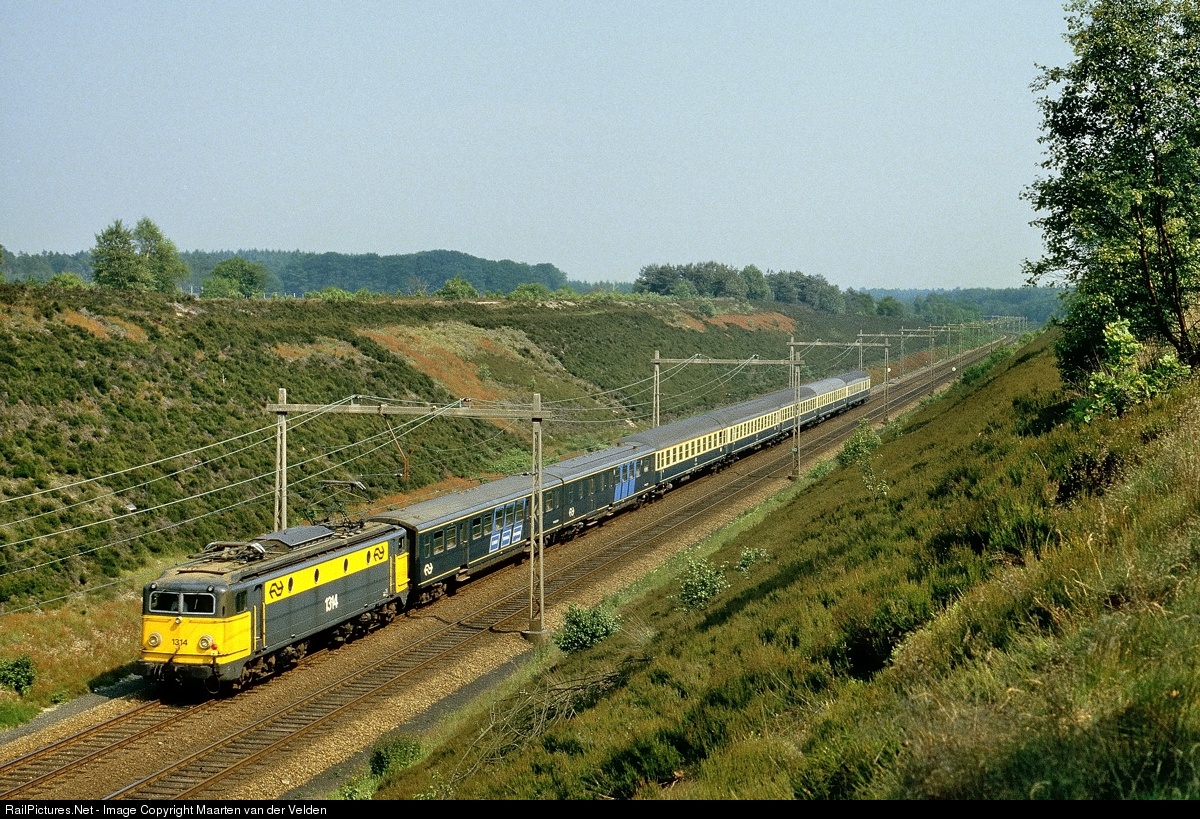 | NS 1314 with Intercity 2242 from Bad Harzburg to Amsterdam CS. The first two coaches were Plan E carriages of NS, needed for reinforcement and catering of the train between Bentheim and Amsterdam.