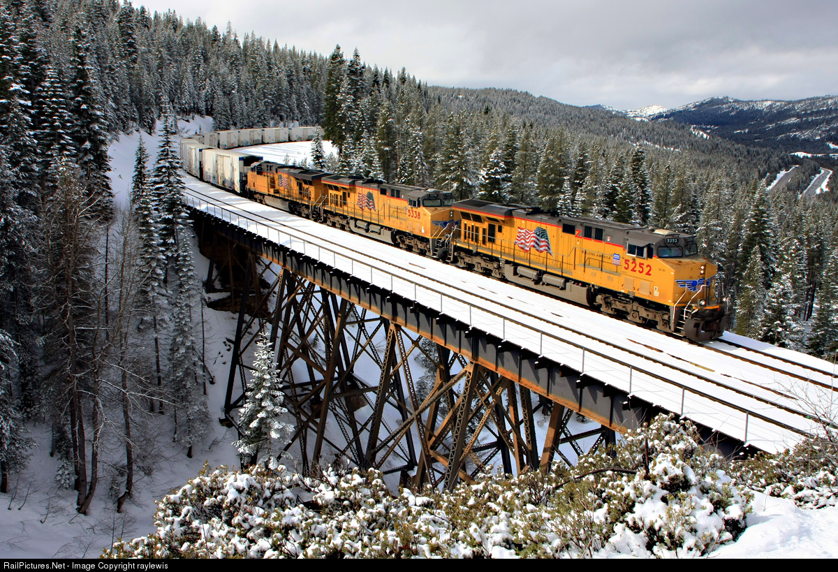 The two "cascade" bridges at Troy have always been a favorite of mine on Donner. Most of my time is spent in blizzards but occasionally it works out where I catch a break in the clouds. On this 9th day of February in 2009 the perishibles crossing the upper cascade bridge at Troy.