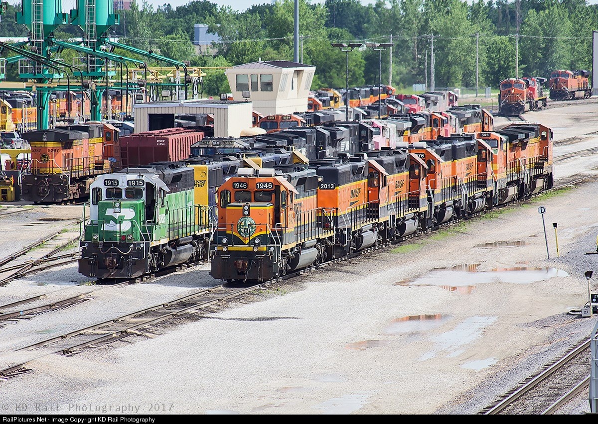 Welp! If you want to see every paint scheme that has ever existed for the BNSF Railway including predecessor go to you local BNSF Yard for details, and sighting. BNSF Galesburg Engine Terminal has been a major hub of attention in north-central, and northwest Illinois since the late 19th Century when the Chicago Burlington & Quincy was building a route that connect the windy City of Chicago to the Western Frontier. Well you can say that a lot has change in a matter of 100+ years. Seen here in the year 2017 you have a hodgepodge of locomotives ranging from the smallest like the GP39M to the more modern bigger and powerful GE Evolution Series locomotives. Also if you like fallen flags Galesburg the place to be, a wide range of Burlington Northern Cascade Green, along with the Santa Fe Warbonnets, and Bluebonnets can been seen congregated with the BNSF earlier paint scheme, something a little different than the today typical BNSF new Swoosh logo.