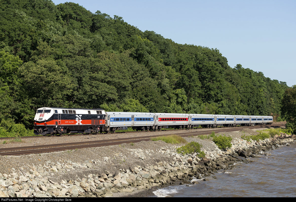 New Haven painted P32AC-DM 229 heading north on Metro North's Hudson Line.