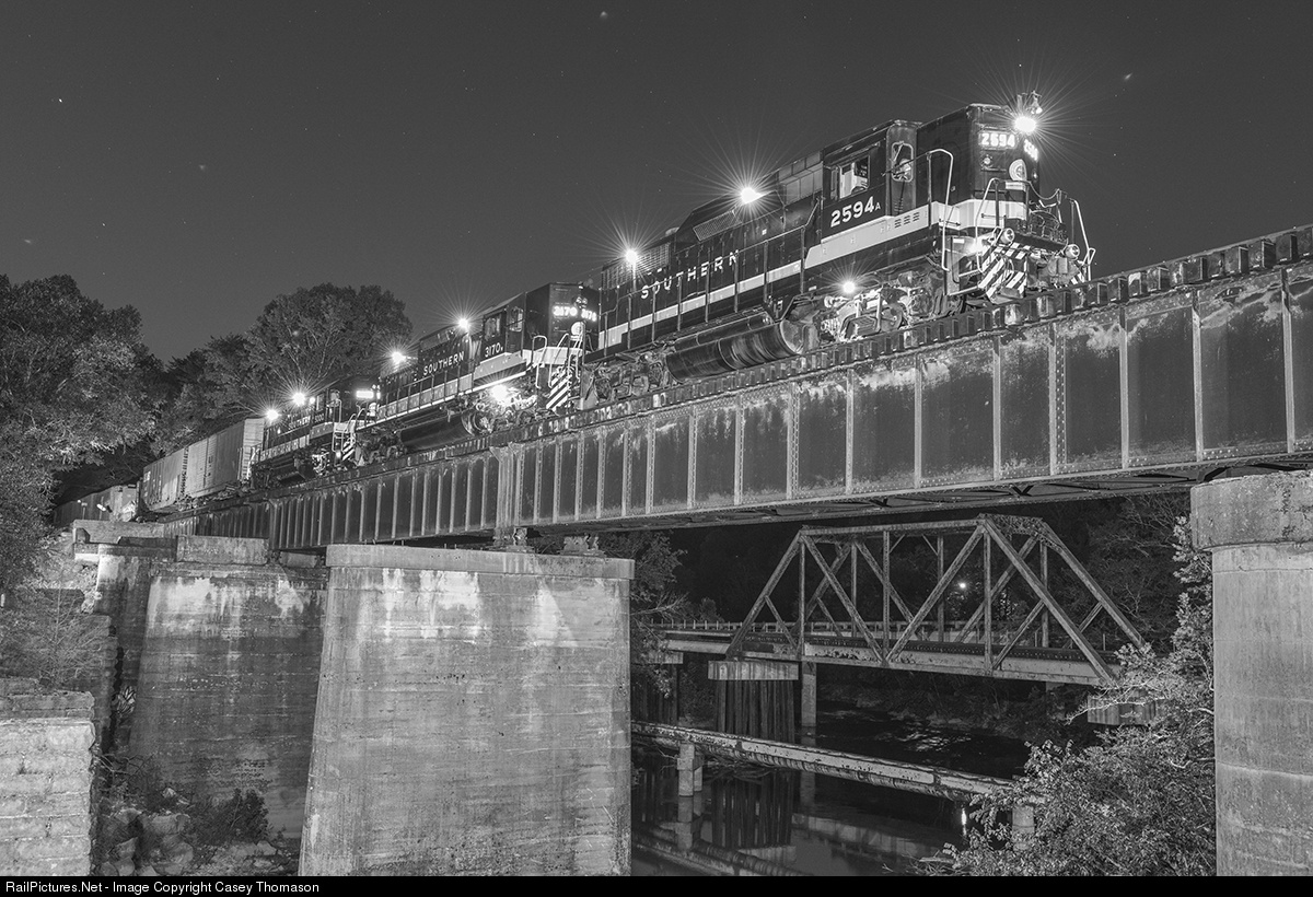 September 1983: A Chattanooga local on the newly formed Norfolk Southern heads out of town with a trio of Southern EMD's-2594, 3170, and 5000. But in reality: This is 2017 at Tennessee Valley Railroad Museum's Chickamauga Creek bridge near Grand Junction during their 7th annual Railfest.