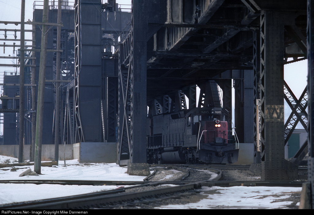 A westbound Cotton Belt freight crosses the Kansas City Terminal’s Kaw River Bridge (also known as the Kansas River Bridge) on December 8, 1985. This massive structure has four main lines—two on top, and two below.
