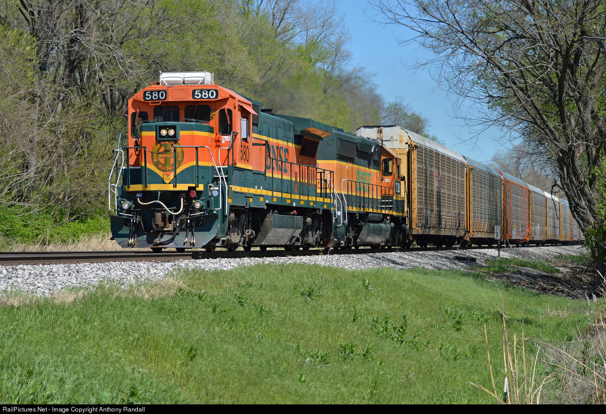 | NS D70 passes through the Minneville community behind a BNSF B40-8 and a BNSF SD40-2, both of which are sporting BNSF's Heritage I paint scheme. |