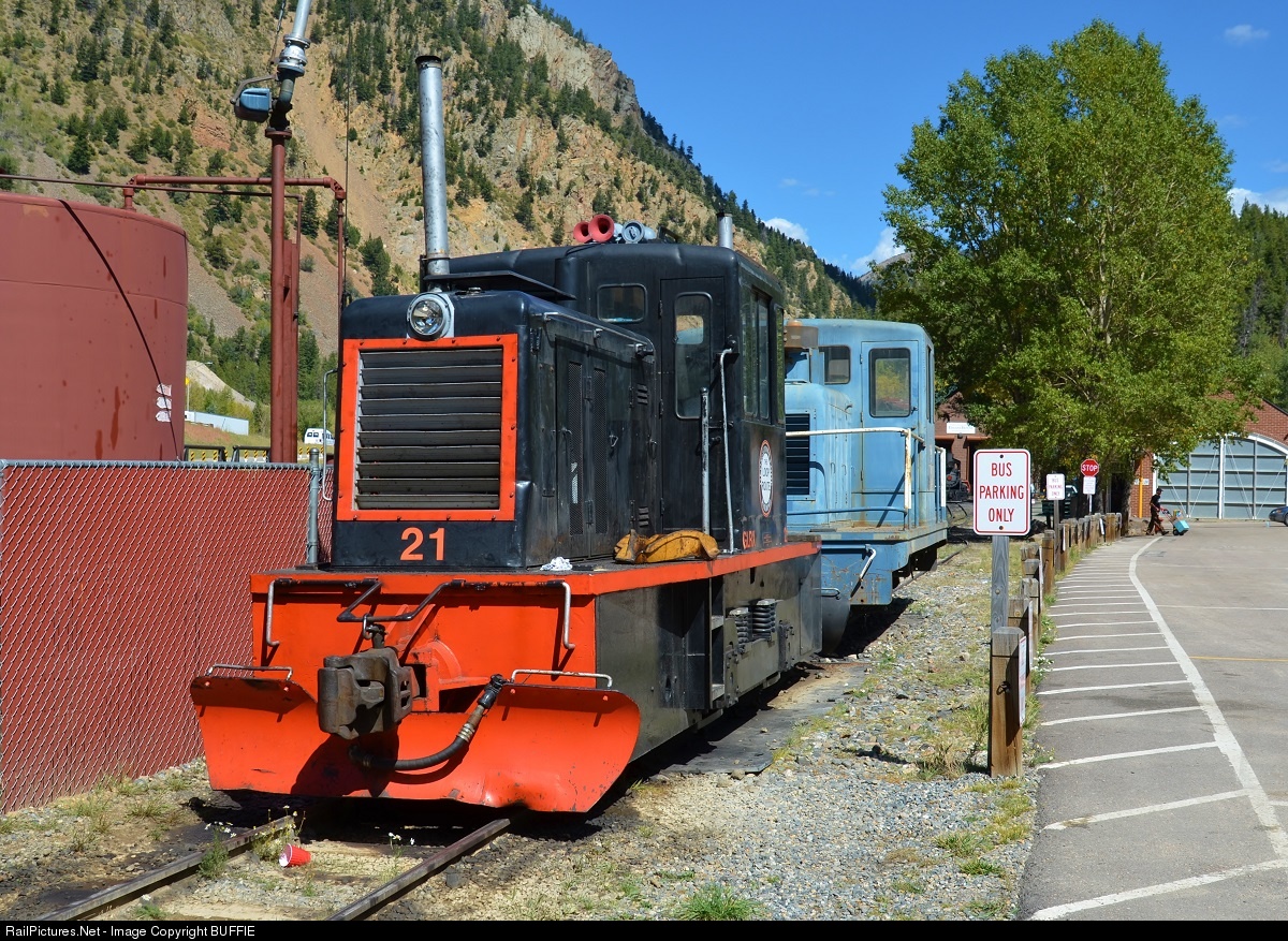 | The Georgetown Loop Railroad has a number of 'critters' that it uses to shuffle rolling stock. GRLX 21 is a 1940's GE 44 ton diesel that was donated to the Colorado Historical Society (for use by the Georgetown Loop Railroad) by the Rocky Mountain Steel Mills (formerly Colorado Fuel & Iron) of Pueblo, Colorado. It was used at the mill to move tons of steel ingots at the plant and operated in that capacity until the 1980s. The engine then sat idle in a field for many years, and in 2004 arrangements were made to donate it to the society |