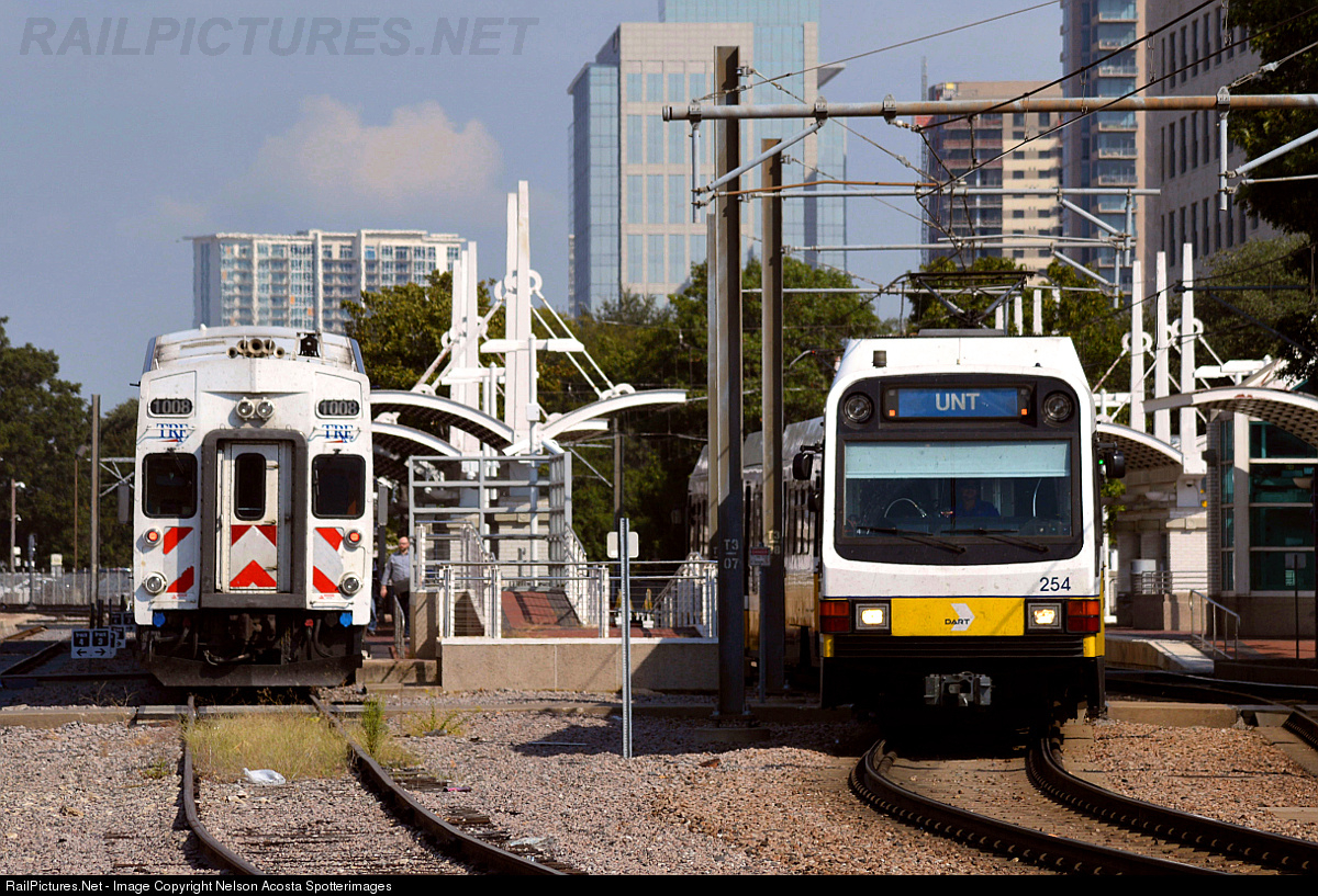 A Nice scene at Dallas Union Station with TRE to the left and DART Rail to the right. Cool DART operator at the controls.