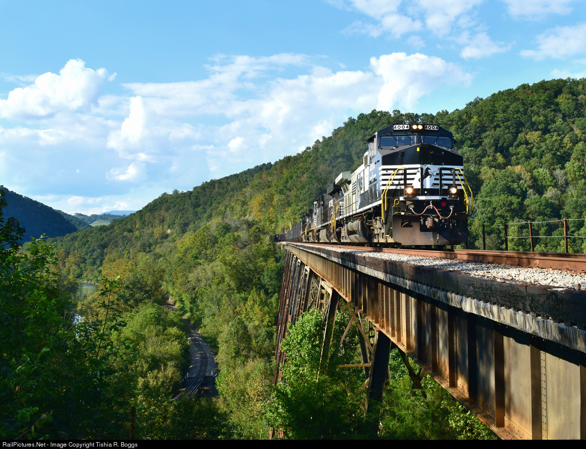 | NS train 710 using trackage rights over CSX rumbles south across the 1907 Clinchfield Railroad-built marvel known as Copper Creek Viaduct near Clinchport, VA. |