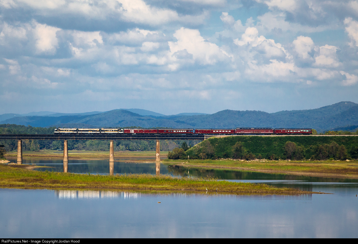 | Three F-units and five resplendent passenger cars cross into Georgia on their way to Atlanta. Unfortunately, brake issues would hamper this train's progress to Savannah, and they would limp back to Altoona the following Monday. |