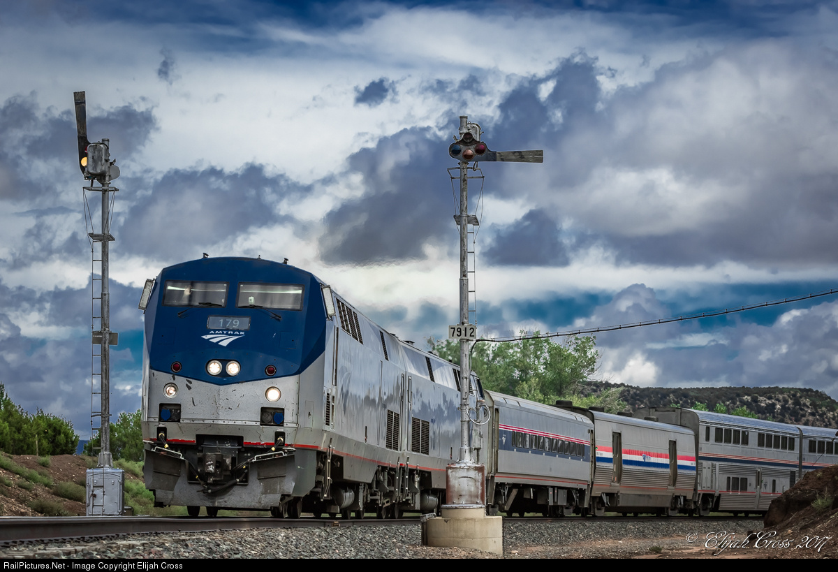 It's a chilly early-Autumn afternoon in Northern New Mexico, and breaking through the crisp air, we see Amtrak's Southwest Chief as it splits an intermediate set of semaphore signals near Chapelle, NM.