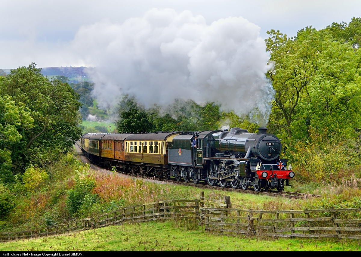 | 45212 is one of Ian Riley's fleet of "Black Fives" based at Heywood. She is one of the earliest examples of what would become a hugely popular and widespread class, and entered into service in November 1935 with the London, Midland and Scottish Railway (LMS). |