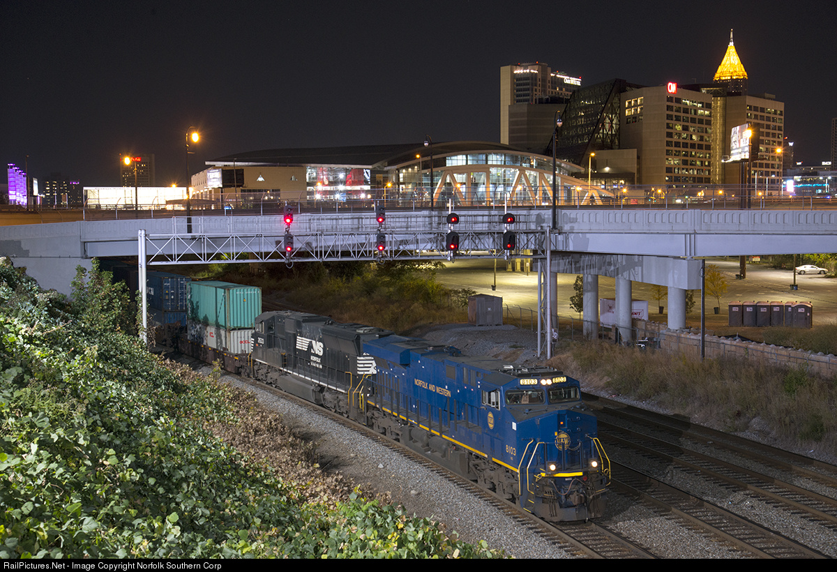 The Norfolk and Western heritage unit leads intermodal train 208 through downtown Atlanta, moving international containers from Austell, GA, to Savannah, for export. Photo by Casey Thomason. For more information about Norfolk Southern, visit www.nscorp.com