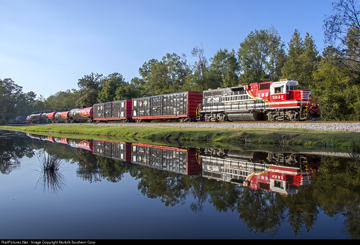 Norfolk Southern's "safety train" passes a small pond near Calcis, Alabama, during a run from Tuscaloosa, AL, to Macon, GA. Photo by Casey Thomason. For more information about Norfolk Southern, visit www.nscorp.com