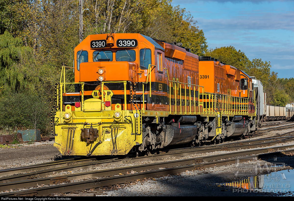 | Huron & Eastern Railroad train 702-16 is seen ready to depart the Bay City Yard with HESR SD40-2s, 3390 and 3391. Both units wear Marquette Rail logos but carry HESR reporting marks. |