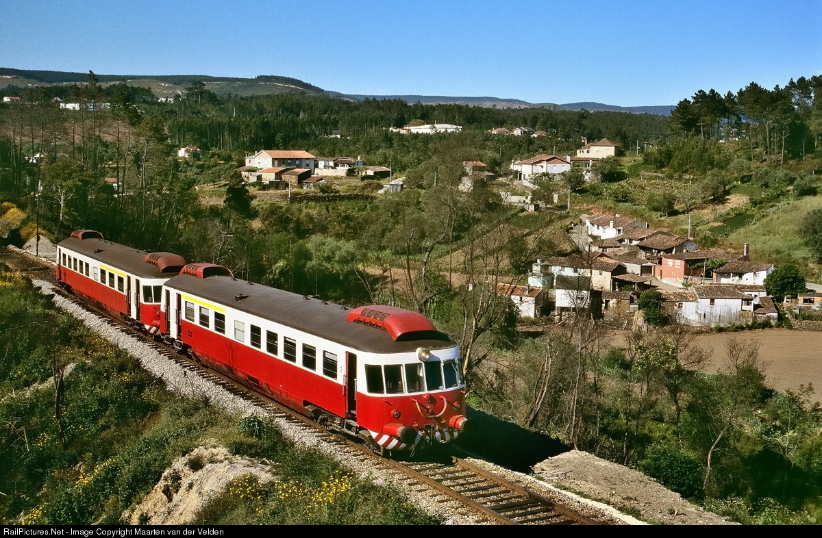 | Allan railcars CP 308 and 304 near Prilhão, riding as Regional 6522 from Serpins to Coimbra Parque (ap.).