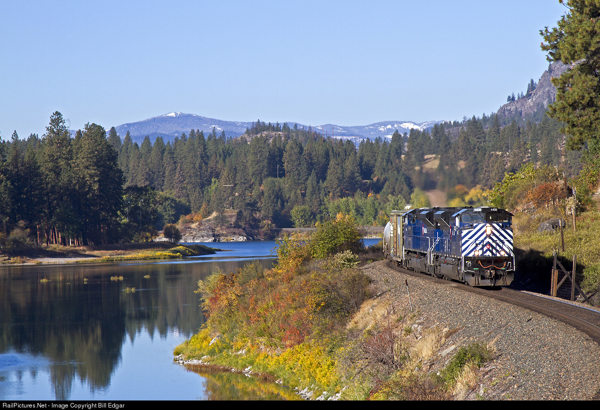 | After working East Thompson Falls, the eastbound gas train makes good time heading back to Missoula along the Clark Fork. Today will head east from Paradise, MT on the 10th Sub. to Missoula along the Flathead River. |