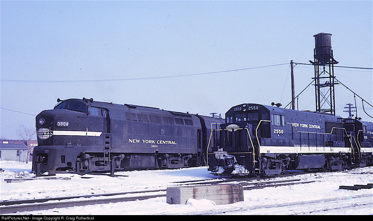 New York Central added 70 new GE U25Bs (phase 1 & 2) to its diesel roster in 1964-65. These 2500-series speed merchants were typically assigned to priority traffic, while older first-generation units drew secondary trains. And speaking of first-generation power, the NYC roster, when this photo was taken, consisted of approximately 1400 road locomotives, including 16 Baldwin RF-16A "shark noses" and eight RF-16Bs. Most of the Baldwin cab units were retired in 1966, while a few including the 3804 remained on the roster until May 1967.