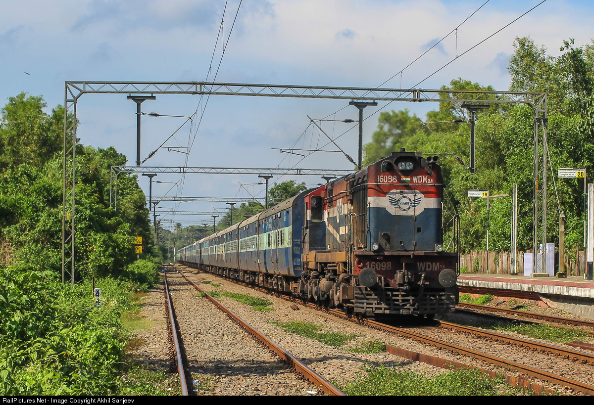 RailPictures.Net Photo: 16098 Indian Railways WDM-3A at Mararikulam, India by Akhil Sanjeev