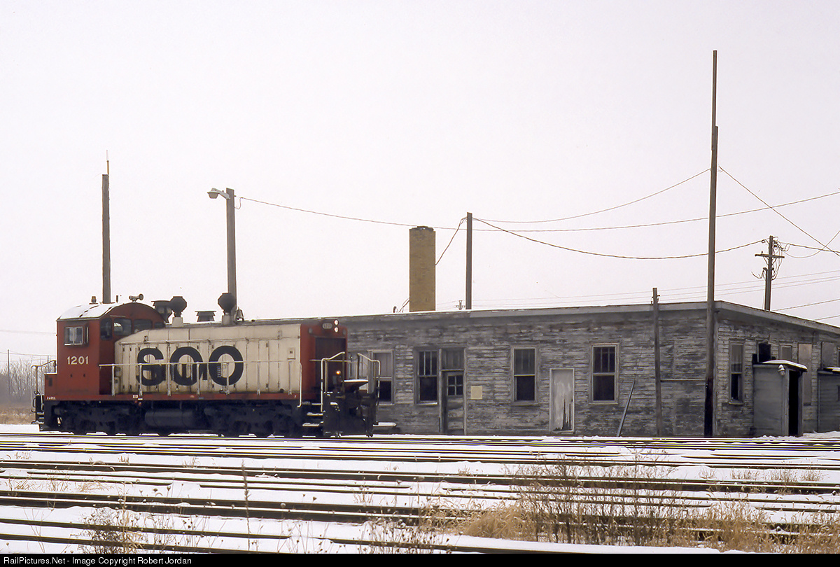 The Dubuque switcher waits in front of the Dubuque Yard office, one part of the Milwaukee Road shops. At the time the SOO still served several local small business. Somewhere I have slides of the switcher pulling cars on a section of street industrial track in the old industrial area of Dubuque.