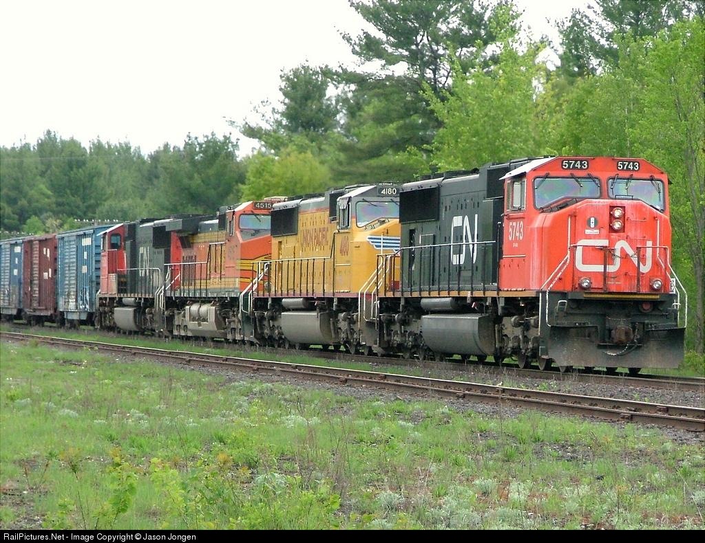 CN 5743 Leads UP 4180, BNSF 4515 and Sister 5630 on CN 451. The western visitors are a very rare sight in Central Ontario