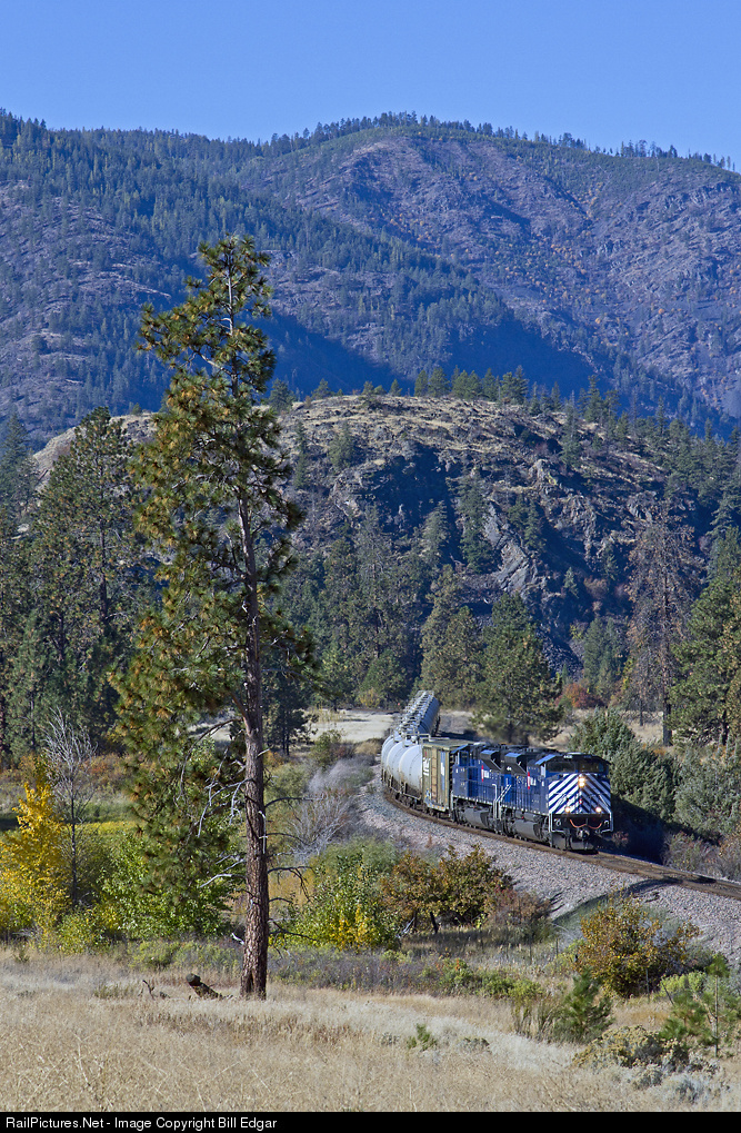 | MRL 4406 returns the morning gas train toward Missoula, MT via Montana Rail Link's 10th Sub. The train has just crossed the Flathead River and will continue east along it before heading toward Evaro Hill and its descent into Missoula. |