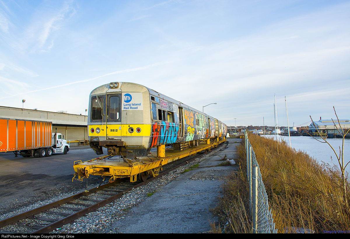 An M3 pair (LI 9812 & LI 9863) and two Pullman Standard P72 Coaches (LI 2907 & LI 2933) sit loaded onto FICX Flatcars on the "River Track" at Wheelspur Facility waiting to be transported to Frontier Metals in Ohio for scrapping. These four pieces of equipment are the first of many vintage LIRR equipment that will meet the torch in the upcoming months.