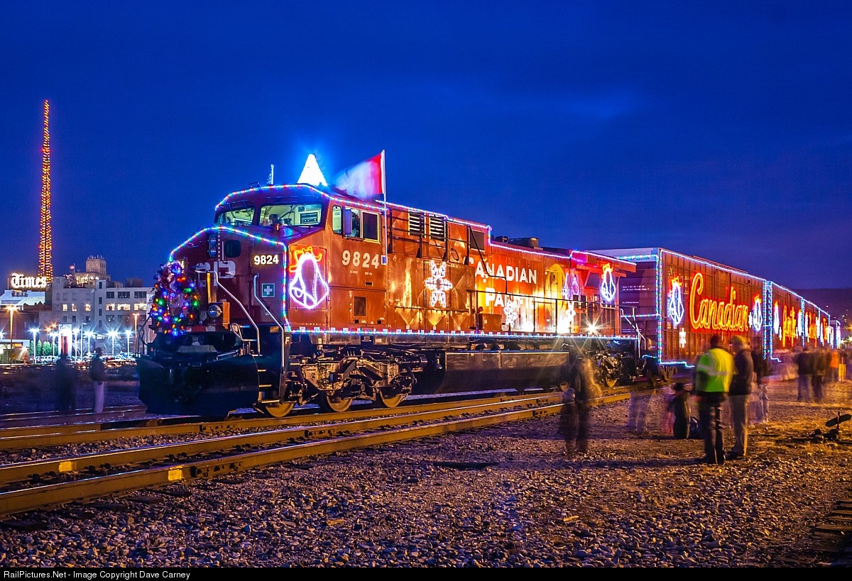 | Before NS ought the South end of the D&H from CP Rail, the annual Holiday Train would start its journey from Steamtown on Black Friday. With the sun set, people admire the lighting display on 9824 and its train.