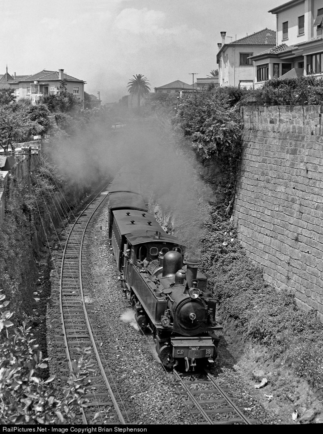 | CP metre gauge 0-4-4-0T Mallet No E169 heads away from Avenida da Franca with the 13.26 Senhora da Hora to Porto Trindade train. This one of the ten 0-4-4-0Ts, Nos 401 to 410, built by Henschel in Kassel for the Caminhos do Ferro Minho a Douro in 1904 and 1908. It is preserved as MD No 409 at Vila Real. |