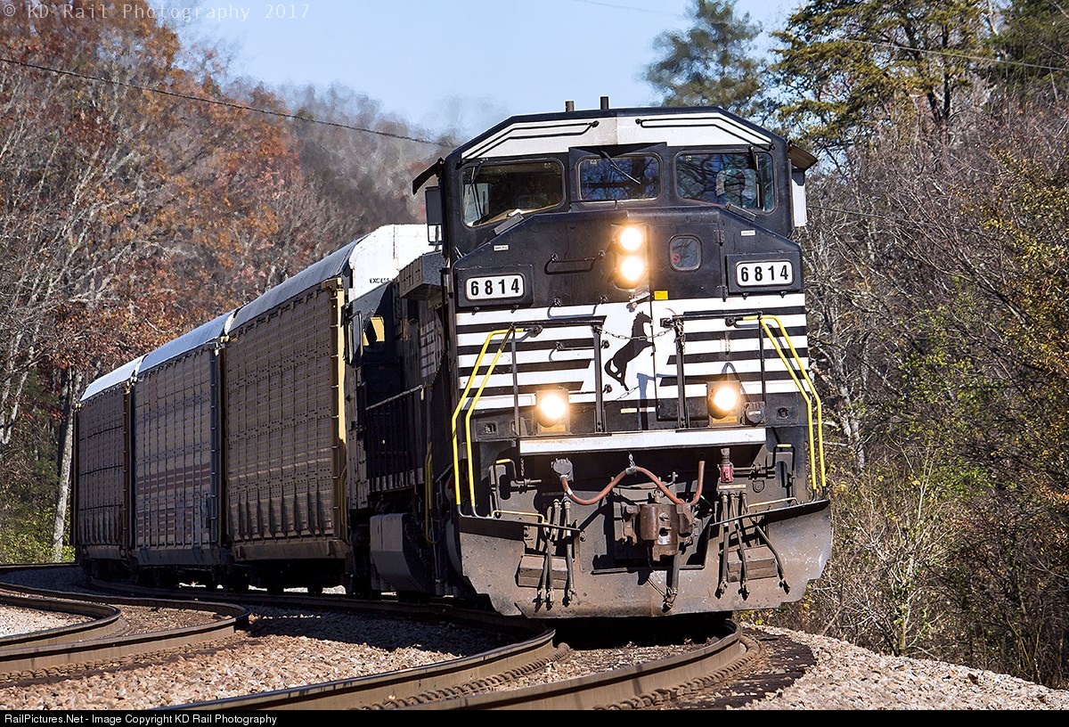 CSX Q282-27 (Baldwin,FL-Louisville,KY) lean into the curve on it's way north up Raccoon Mountain on the CSX Chattanooga Sub on the Nashville segment of it's long journey to Louisville. NS 6814 is one of nine former BN SD60M's that was acquired by Norfolk Southern from National Railway Equipment (NREX) during the fourth quarter of the 2014 season. In within the following months after their purchase they were sent to Altoona, for an inspection, and a repaint, thus the genesis of the Norfolk Southern's Triclops Thoroughbred. 6814, and it's sister unit is most definitely shoo-in as part of the strange and unusual side of the NS locomotive roster in my book. "Personally they would still good in Cascade Green, but you can't win them all!"