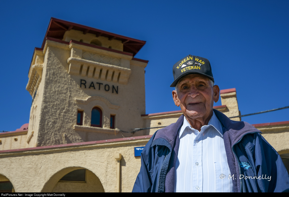 The caretaker at Raton, NM opens the waiting area, and looks after the station. I noticed him picking up some litter on the platform after the Southwest Chief departed and asked to take his photo. He served our country in the Korean war and is now serving Amtrak customers.