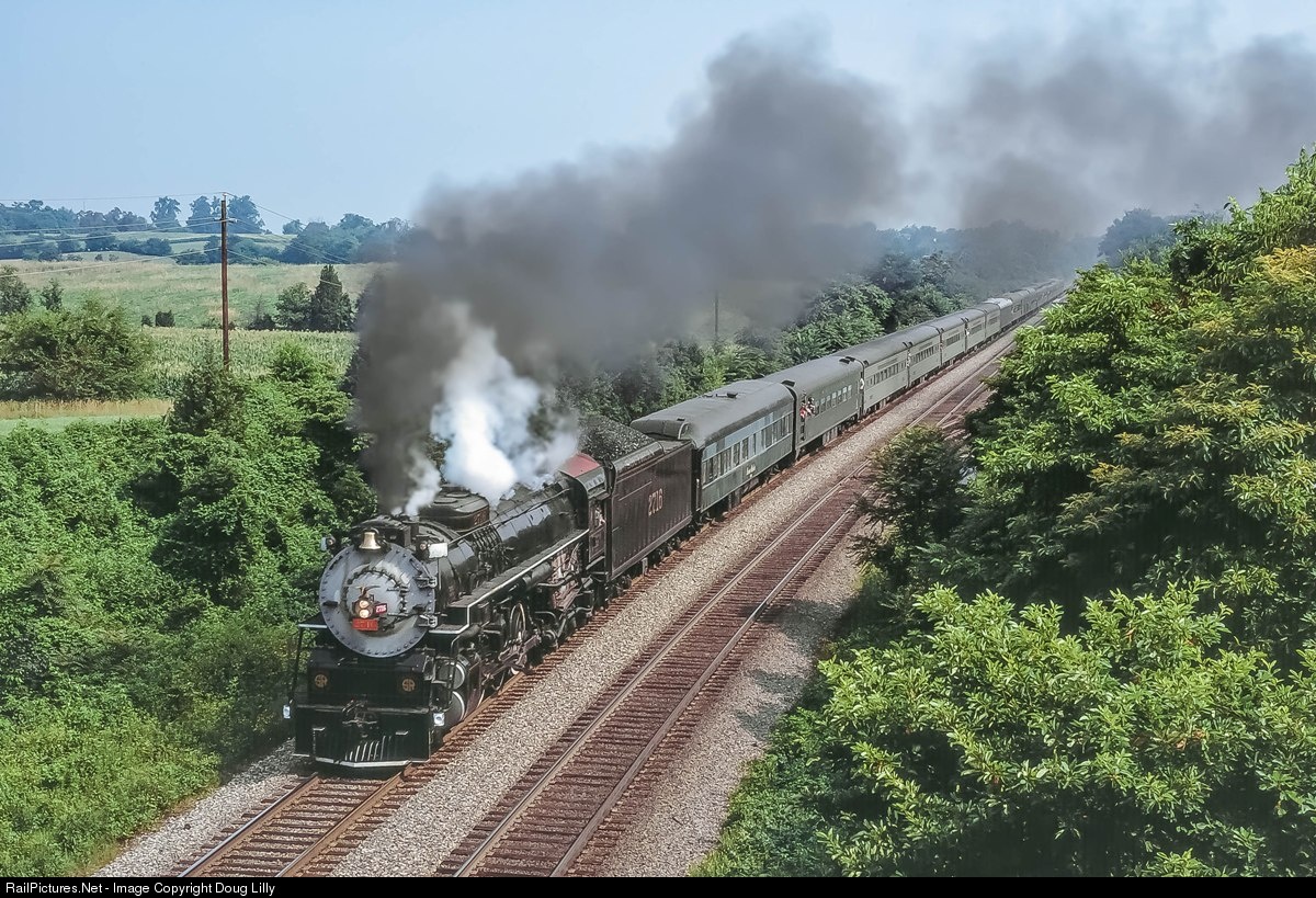 The only 2-8-4 ever to appear on the Southern Railway’s roster, former C&O 2716, approaches the U.S. 15 underpass near Culpeper, Virginia with a 16 car excursion.