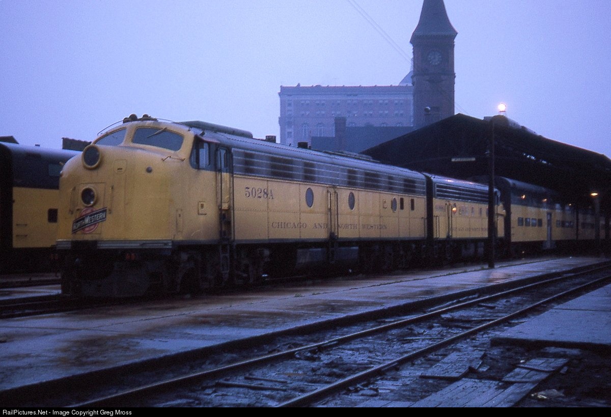 The last day..... Companion photo to 640628. CNW 5028A leads the Peninsula 400 out of CNW's Lakefront Depot on May 15th, 1966. CNW operations would move to the nearby Milwaukee Road depot the next day. Too bad this depot wasn't saved. Bob Ferge photo from my collection.