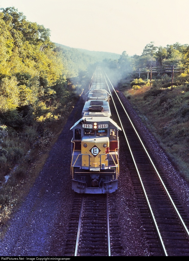 A pair of year-old EMD SDP45s blast upgrade with empty autoracks nearing the old iron bridge at Shin Hollow near Huguenot, New York.