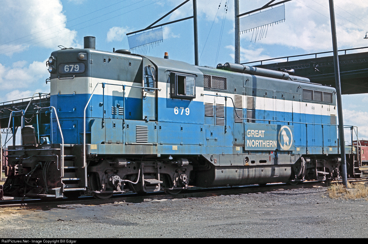 GN 679 and 680 were the road's only two passenger GP9s and were delivered with boilers, torpedo tube air tanks, and larger than normal water/fuel tanks. They operated in all three of GN's color schemes, and spent most of their time assigned to the Superior-Twin Cities area as back up power for Badger/Gopher passenger trains. They could be seen in the area doing switching, ore transfers, or handling freight traffic as well. This photo was taken after the BN merger, but before re-numbering.