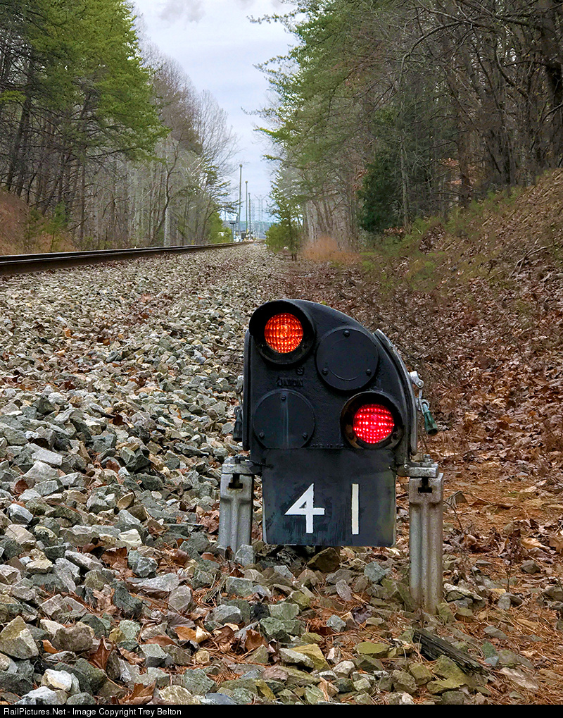 | An old leftover from the N&W era, a PL style Dwarf, stands on the spur of Belews Creek Steam Station. This Dwarf stood for over 43 years at the yard entrance to the plant. It along with the north facing 2 aspect CPL were removed in September of this year and replaced with a 2 head Safetrans color light. |