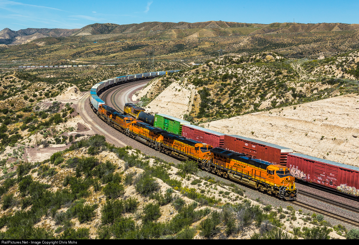 RailPictures.Net Photo: BNSF 3858 Burlington Northern Santa Fe GE ES44C4 at Cajon Pass, California by Chris Mohs
