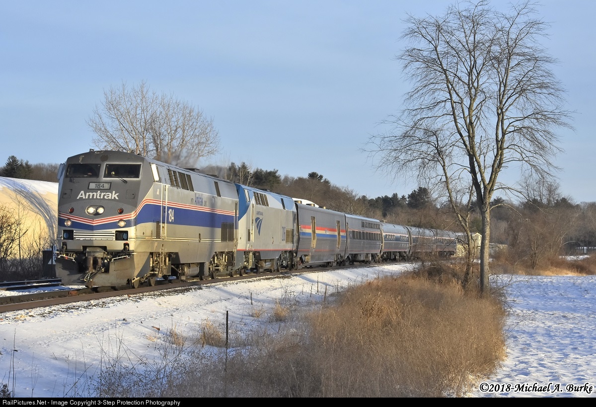RailPictures.Net Photo: AMTK 184 Amtrak GE P42DC at Westfield, Massachusetts by 3-Step Protection Photography