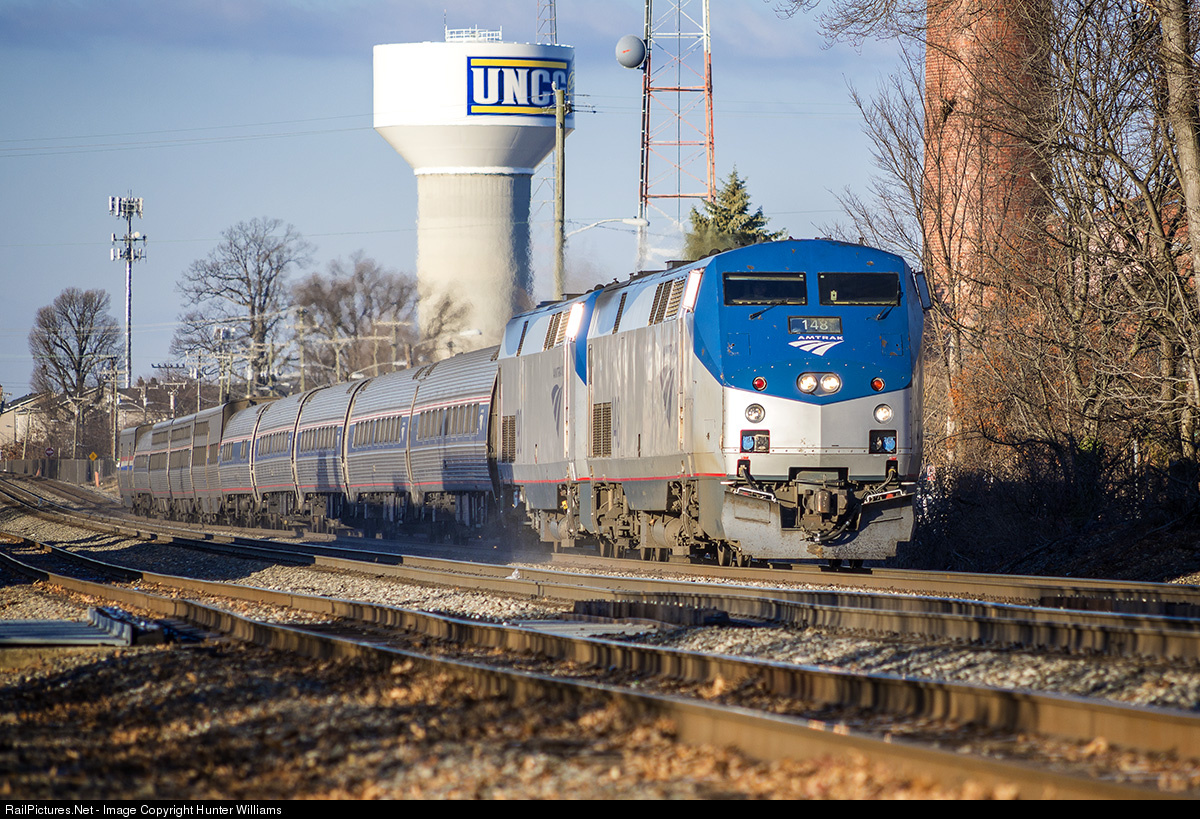 RailPictures.Net Photo: AMTK 148 Amtrak GE P42DC at Greensboro, North Carolina by Hunter Williams