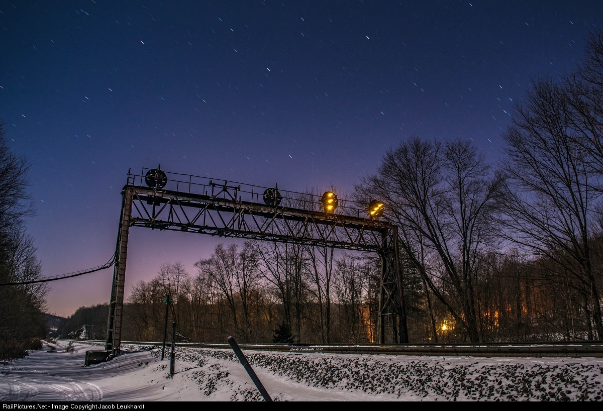 NS 21M knocks down the PRR signals at MP 254 in Lilly on a frigid 0 degree night.