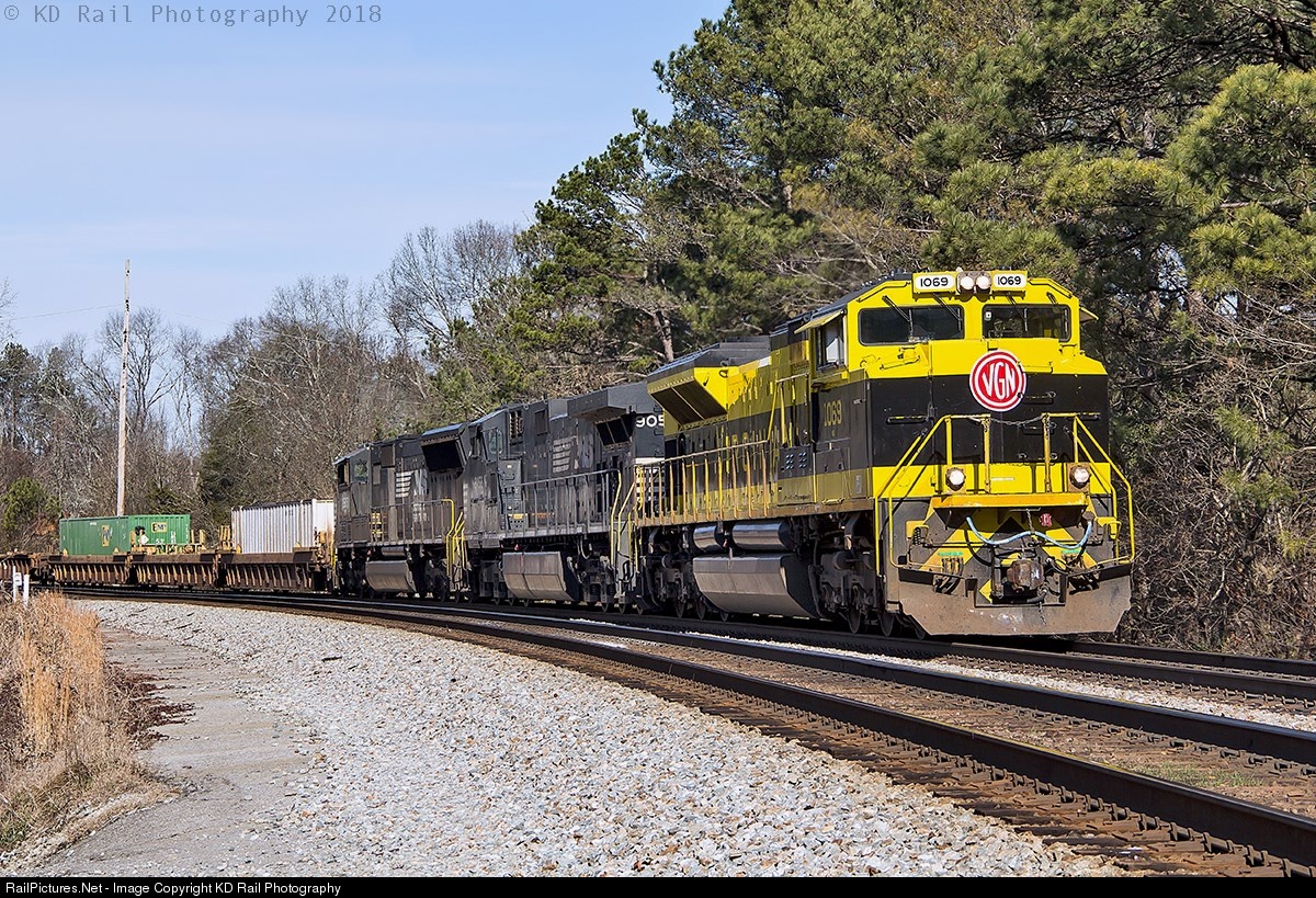 Northbound NS 202 (Rossville,TN-Rutherford,PA) eases around the curve on the main 2 track just before knocking the approach signal at Control-Point (CP) Williams down (MP-236.0 A) in Chattanooga, TN. The train will have to come to a safe stop at the Control-Point (CP) Jersey due to the engine shop personnel on the ground working on the lead engine of NS 180 that is park at the Jersey Rd crossing just 4 miles ahead. Once the shop crew is in the clear the hot intermodal train being led by the Virginian Heritage Unit will head toward Ooltewah, where the train will get on the NS West-End Div (A-Line) for Knoxville, TN.