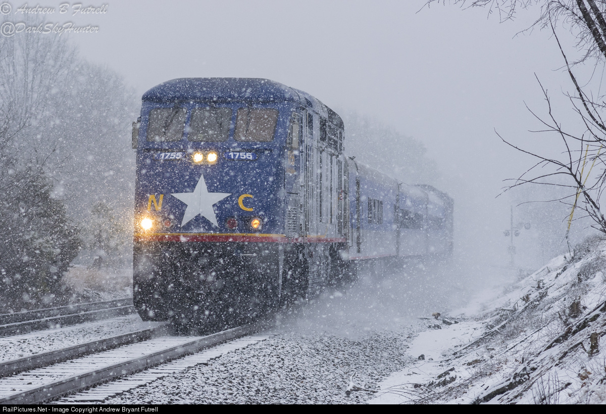 Amtrak 75 races through heavy snow towards Cary.